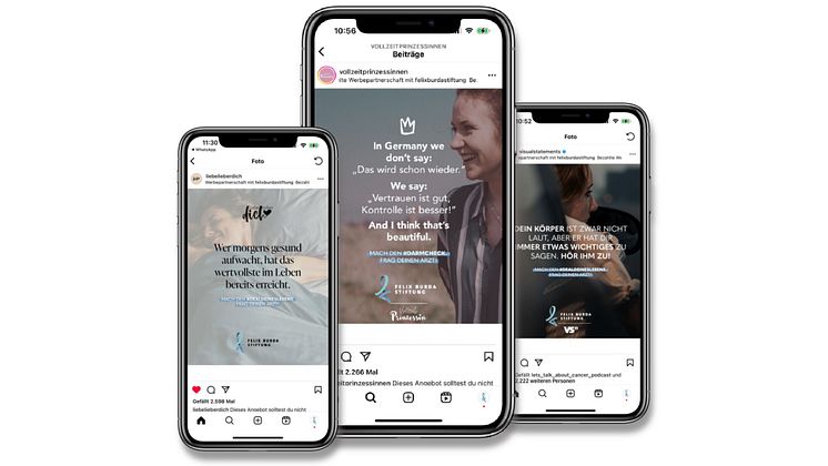 Mockup verschiedener Motive der Native Advertising Kampagne auf den Markenkanälen von Visual Statements, LiebeLieberDich und Vollzeitprinzessin.
