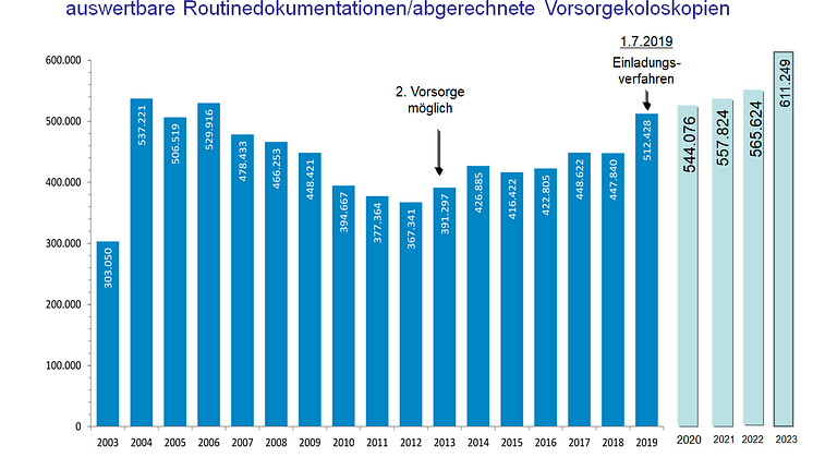 Entwicklung der Vorsorgekoloskopie in Deutschland 2003-2023