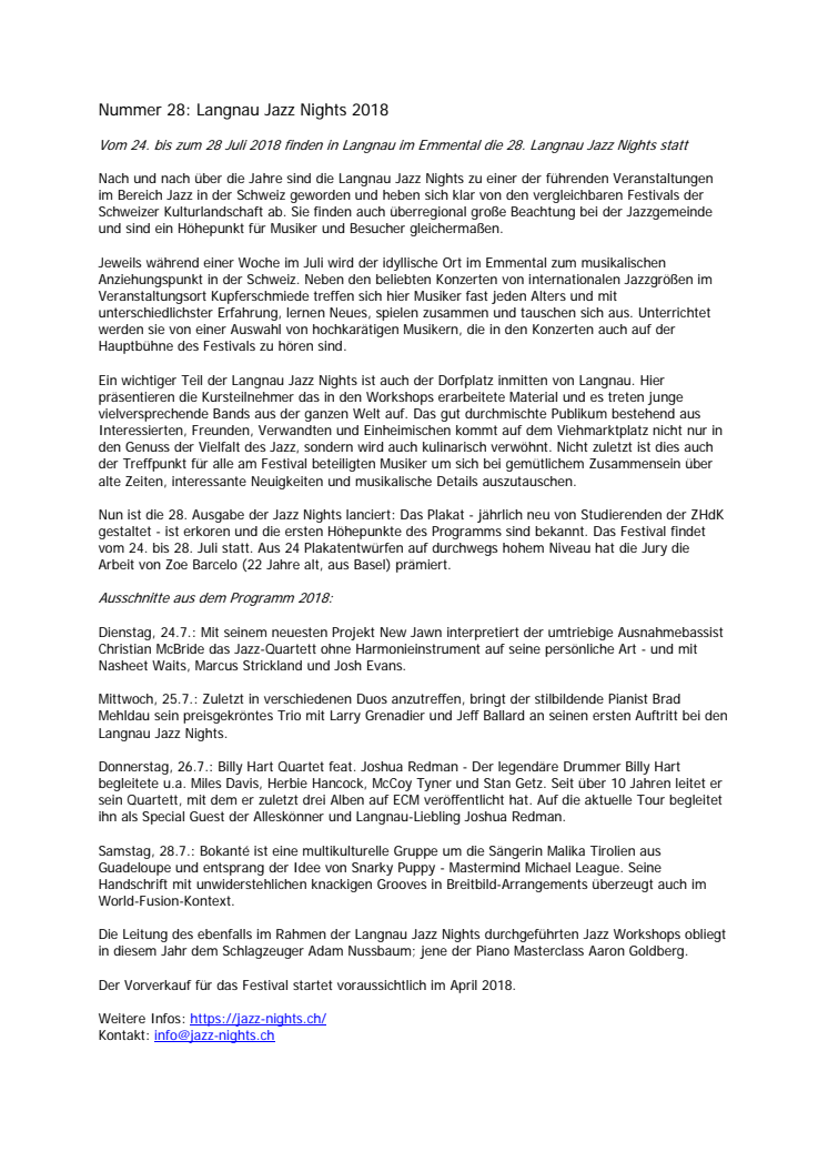Nummer 28: Langnau Jazz Nights 2018