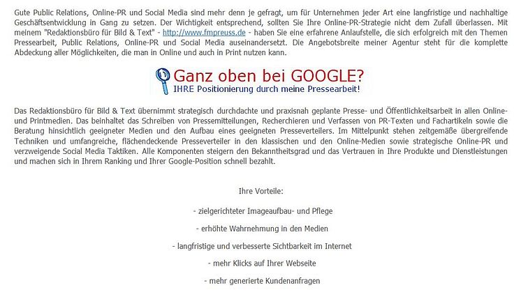 Viele Pressestellen und selbst PR-Agenturen (oft eingebunden in größere Werbeagenturen und All-In-One-Anbieter) sind oft vielfach überfordert, wenn sie den Gegebenheiten der rasanten Entwicklung im Marketing allgemein und in den Public Relations speziell folgen wollen. Um dann auch noch gleichzeitig zeitgemäß aktiv zu werden, und teilweise überkommene Vorstellungen von klassischer Öffentlich