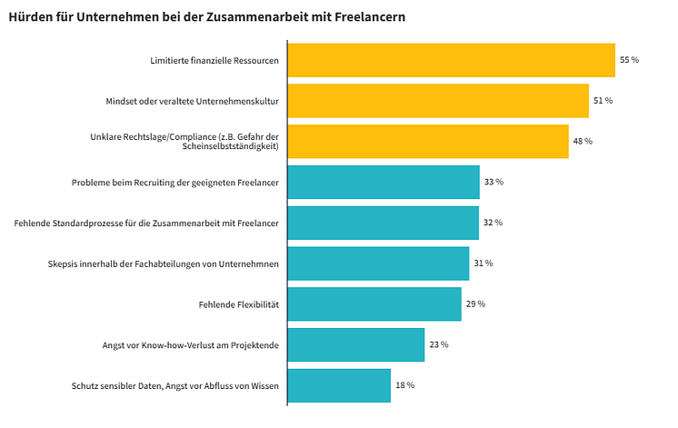 - Hauptgründe für herausfordernde Zusammenarbeit von Unternehmen mit Freelancern: