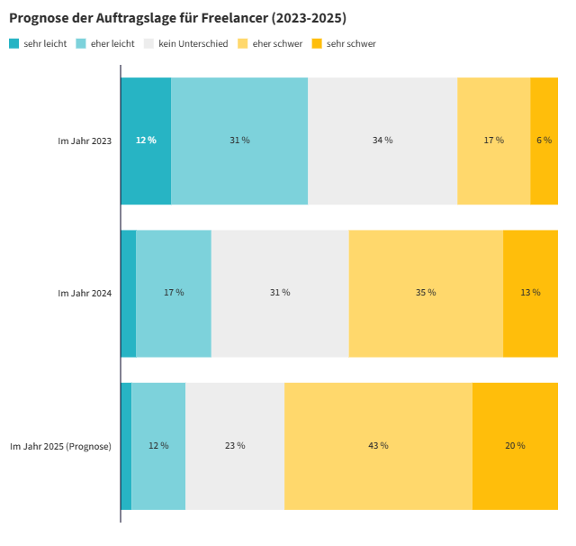 Die aktuelle Freelancer-Studie 2025 von freelance.de basiert auf den Angaben von 2.851 Teilnehmern – vorwiegend aus den Bereichen IT, Engineering, Kommunikation und Beratung. Die jährliche Befragung beleuchtet die wirtschaftliche Situation, Herausforderungen sowie die politische und strukturelle Wahrnehmung von Freelancern in Deutschland. Im Vergleich zu den Vorjahren zeigt sich 2025 ein deutlich angespannteres Stimmungsbild – sowohl finanziell als auch mit Blick auf die Projektlage und die politische Unterstützung. Ein besonderes Highlight in diesem Jahr: Die interaktive Ergebnisdarstellung mit zahlreichen Filtermöglichkeiten (z. B. nach Branche, Geschlecht oder Berufserfahrung). Sie können die Visualisierungen direkt einbetten oder als Bilddatei herunterladen – ideal für Ihre Berichterstattung.