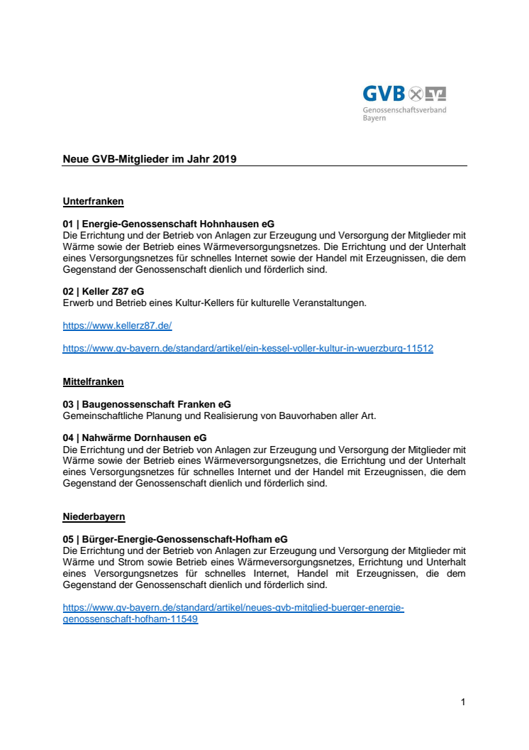 18 Neugründungen genossenschaflticher Unternehmen gab es 2019 in Bayern.