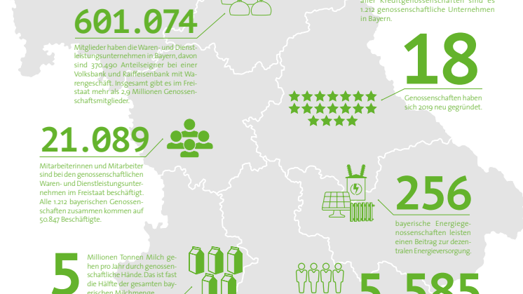 Im vergangenen Jahr gründeten sich 18 Genossenschaften neu. Im Jahr 2018 waren es 14. 2017 gab es 20 Neugründungen und im Jahr 2016 waren es 13. Einen Schwerpunkt im diesjährigen Gründungsgeschehen bildete Oberbayern, wo der GVB neun Neugründungen verzeichnete.
