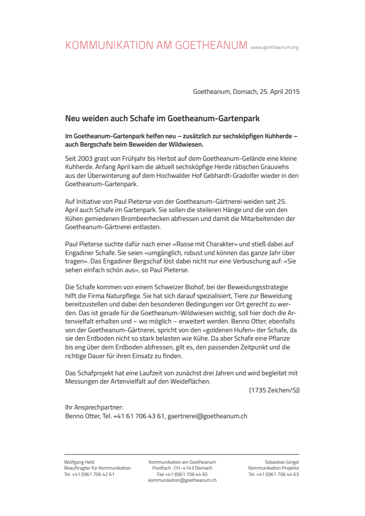 Goetheanum-Gartenpark: Neu weiden hier auch Schafe