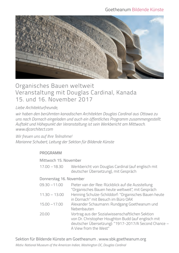Programm Organisches Bauen weltweit mit Douglas Cardinal am 15. und 16. November 2017