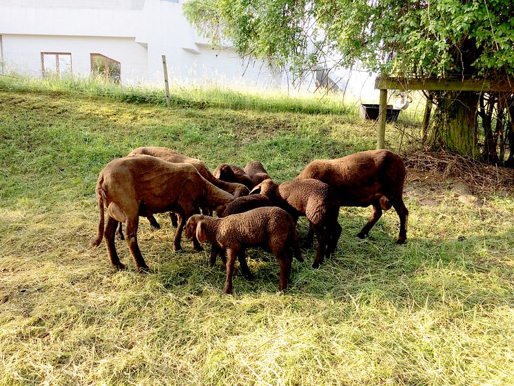 Nach der Schur: Gruppe Engadiner Bergschafe