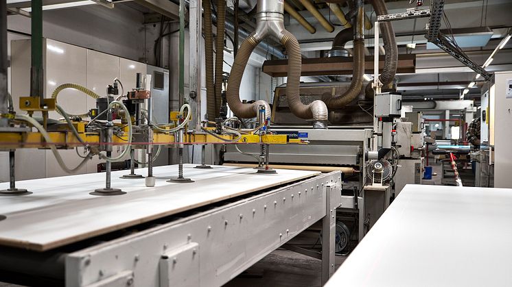 Ein weiterer Schwerpunkt des neuen Technikzentrums ist die Fertigung von Postforming- und Faltelementen mit Schichtstoffoberflächen. Diese Elemente können bis zu einer Länge von 4.100 mm nahtlos sein und sind insbesondere im Objektbereich sehr gefragt. Eine Kantenbearbeitungsstation mit Nullfugen- oder PUR-Technik rundet das Angebot ab. Verantwortlich für das neue Technikzentrum in Arnsberg ist Matthias Lürbke, der über eine langjährige Expertise im Fertigungsbereich für diese Produkte verfügt. Zusammen mit dem bereits bestehenden Zuschnittzentrum und dem umfangreichen Plattensortiment bietet das Unternehmen seinen Kunden nun ein noch größeres Servicespektrum aus einer Hand.
