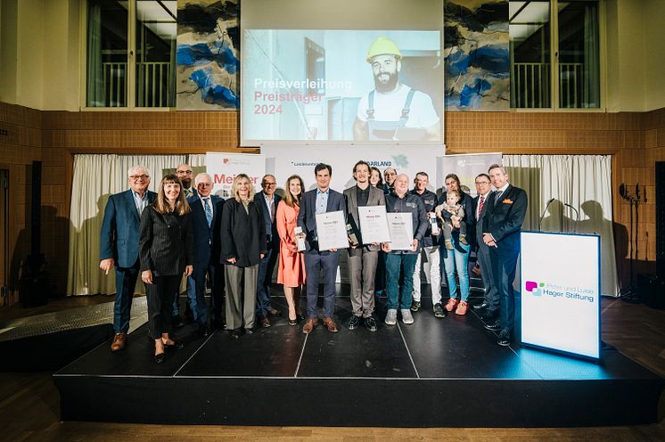 Bild 2: Preisträger, Laudatoren, Stiftungsvorstand, Minister Jürgen Barke und CEO der Hager Group Sabine Busse