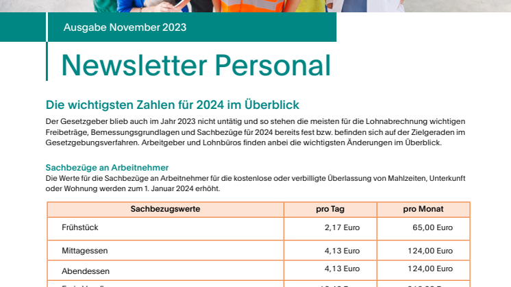 Die monatlich erscheinende Ausgabe vom "Newsletter Personal" informiert stets top aktuell über eine Vielzahl von Themen rund um das Thema Personal und Lohnabrechnung.