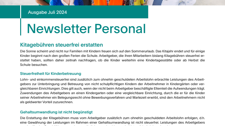 Die monatlich erscheinende Ausgabe vom "Newsletter Personal" informiert stets top aktuell über eine Vielzahl von Neuigkeiten rund um das Thema Personal und Lohnabrechnung.