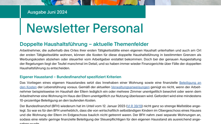 Im Juni geht es um das Thema Doppelte Haushaltsführung. Unter anderem geht es dabei um