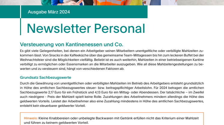 Die monatlich erscheinende Ausgabe vom "Newsletter Personal" informiert stets top aktuell über eine Vielzahl von Neuigkeiten rund um das Thema Personal und Lohnabrechnung.
