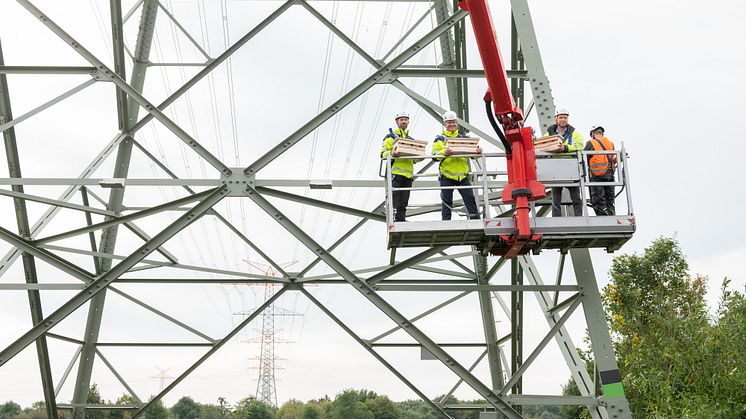 Energiewendeminister Jan Philipp Albrecht und Staatssekretär Tobias Goldschmidt sowie TenneT-COO Tim Meyerjürgens und SH-Netz-Aufsichtsrat Matthias Boxberger betonen die vielseitigen Vogel- und Umweltschutzmaßnahmen der Westküstenleitung