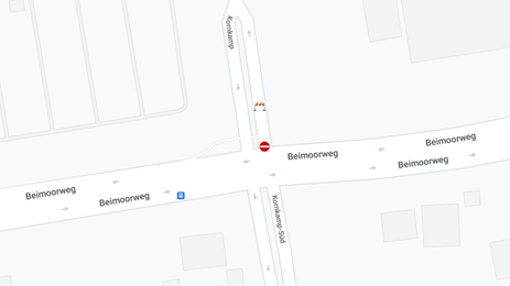 Zufahrt zum Kornkamp ab Beimoorweg in nördlicher Fahrtrichtung für Bauarbeiten vom 7. Juni bis voraussichtlich 17. Juni 2022 voll gesperrt.