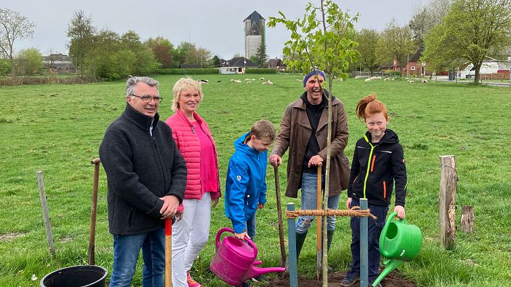 Die Gemeinde in Nordfriesland pflanzt Bäume an örtlicher Kindertagesstätte. SH Netz unterstützt die Baumpflanz-Aktion.
