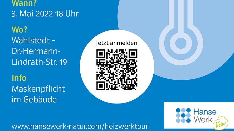HanseWerk Natur lädt gemeinsam mit Matthias Reuter, Klimaschutzmanager der Stadt Wahlstedt, am 3. Mai 2022 um 18 Uhr interessierte Bürgerinnen und Bürger dazu ein, die Energiezentrale in Wahlstedt zu erkunden. Auf den Spuren der Wärme in Wahlstedt gibt HanseWerk Natur Einblicke in die aktuelle Energieeffizienz der Wärmeversorgung und stellt seine Pläne für einen zukünftig höheren Anteil grüner Wärme vor. Alle Interessierten können sich anmelden unter www.hansewerk-natur.com/heizwerktour. Zum Coronaschutz gibt es im Heizwerk eine Maskenpflicht.