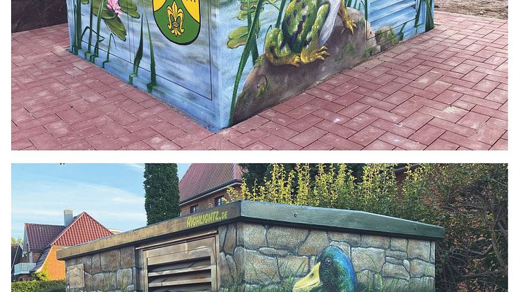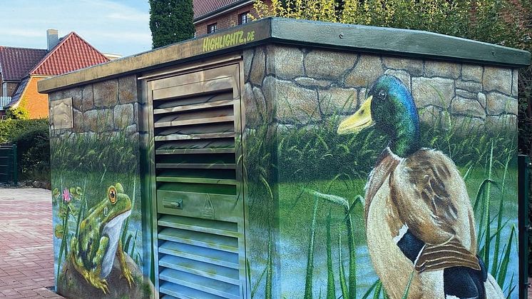 Die Verwandlung einer tristen Station zum farbenfrohen Kunstwerk kann im folgenden Video bestaunt werden: Video zur Ortsnetzgestaltung in Kellinghusen.