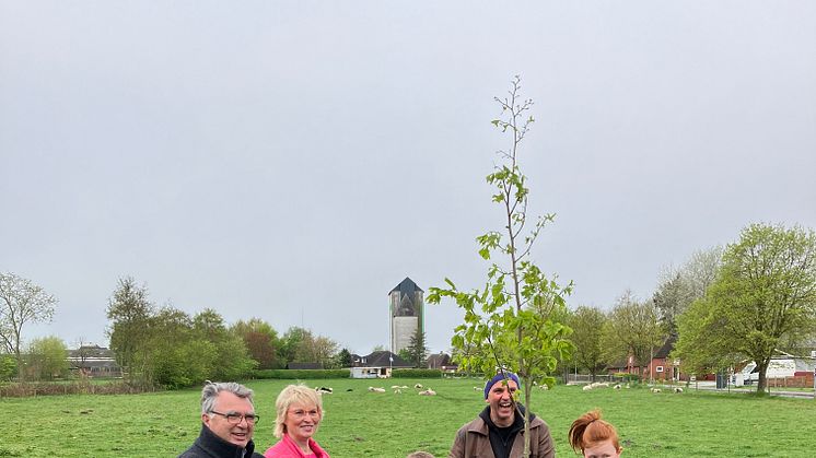 Die Gemeinde in Nordfriesland pflanzt Bäume an örtlicher Kindertagesstätte. SH Netz unterstützt die Baumpflanz-Aktion.