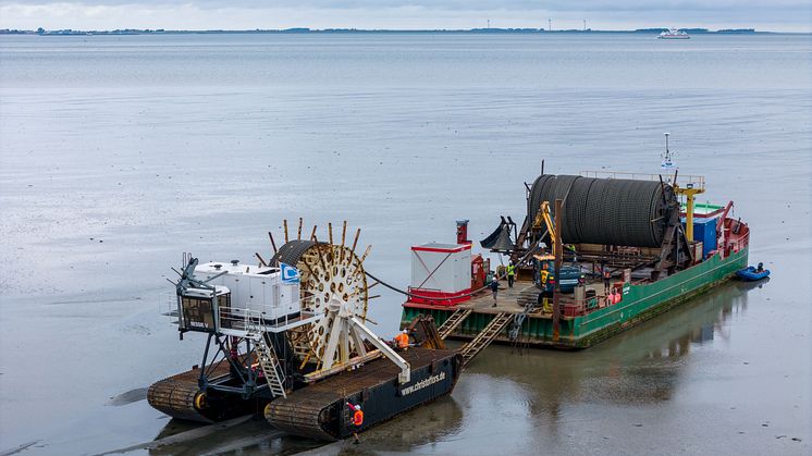 „Durch die extrem breiten Antriebsketten mit einer Auflagefläche von 14 Quadratmetern fällt die Bodenbelastung pro Quadratzentimeter von Nessie geringer aus als bei einem durchs Watt spazierenden Erwachsenen“ erklärt Marius Bruhn. Mit diesem Verlegeverfahren wird der Umwelteingriff so gering wie möglich gehalten.
