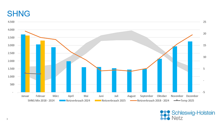 Im Vergleich zum Durchschnitt des Zeitraumes 2018 bis 2024 sinkt jedoch der Netzverbrauch im Februar.