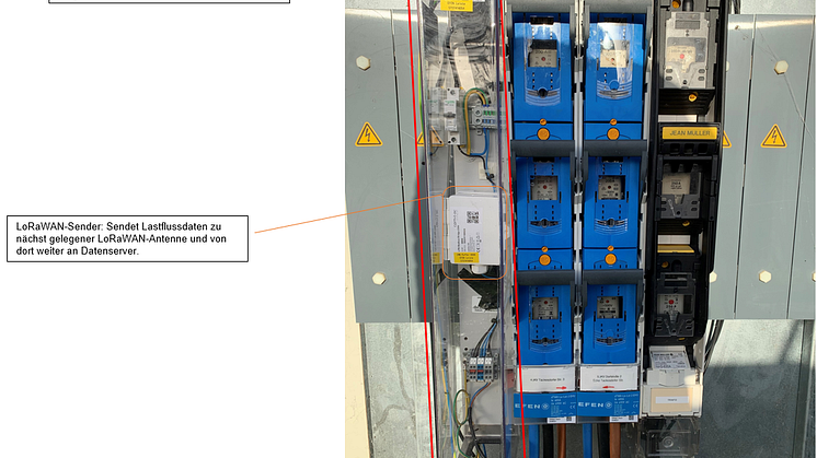 Lastflussmessgerät und LoRaWAN-Sender in einer aufgerüsteten Ortsnetzstation von SH Netz.