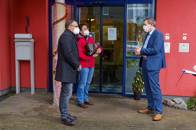 Rainer Möller und Tatjana Puusepp von der Hephata-Behindertenhilfe freuten sich über den Besuch von Kreisbeigeordnetem Karsten Krug (von links).