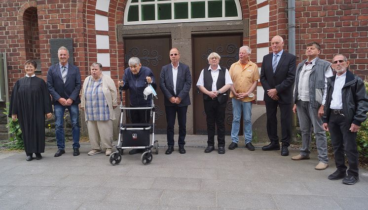 Sie feierten gemeinsam die Konfirmations-Jubiläen (von links): Pfarrerin Annette Hestermann, Lutz Klapp, Erika Lambach, Rolf Bierbach, Klaus Borsch, Hans-Jürgen Bock, Reinhold Kuchler, Gerhard Gregor, Jürgen Dietrich und Peter Kuhl