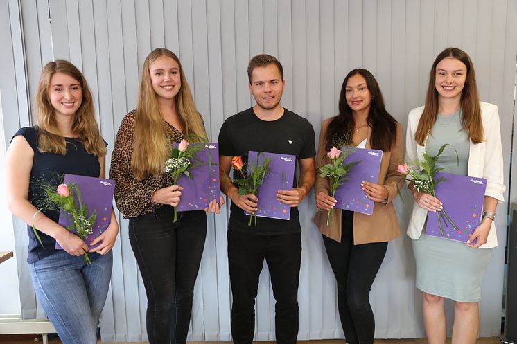 Celina Rang (von links), Paula Drescher, Leon Schäfer, Nicole Flugfelder und Gina-Maria Borgerding haben die Ausbildung zum/zur Kaufmann/Kauffrau für Büromanagement absolviert.