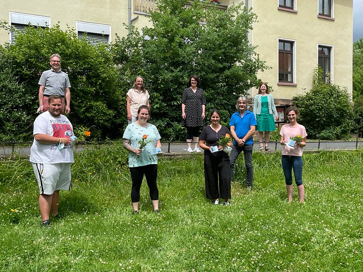 Die Absolvent*innen mit ihren Dozent*innen: Vorsteher der Diakonischen Gemeinschaft und Hephata-Vorstand Pfarrer Maik Dietrich-Gibhardt, Florian Schmidt, Angelika Baier-Schops, Theresa Rohrer, Diakonin Kathrin Rühl, Johanna Böttner, Pfarrer Thorsten Garbitz, Prof. Dr. Regina Sommer, Denise Ratzkowski von links).