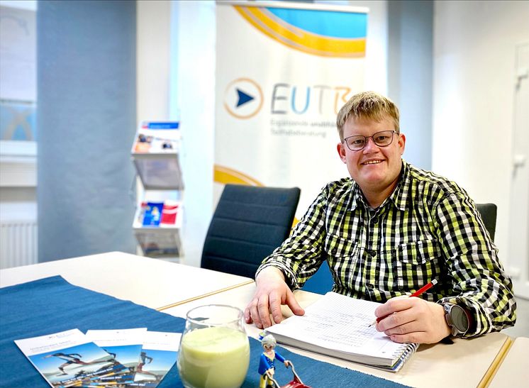 Fabian Schade hat das Prader-Willi-Syndrom und berät andere Menschen mit einer Behinderung in der EUTB in Schwalmstadt. Eine Seltenheit: Im Regelfall beraten dort nur Menschen mit einer körperlichen Behinderung.
