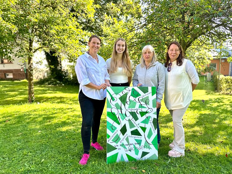 Präsentieren ein künstlerisches Ergebnis der Gesundheitswoche (von links): Organisatorin und Dozentin Susanne Salin, Studierende Lena Salin, Dozentin Anette Heßlar und Studierende Kerstin Korell.