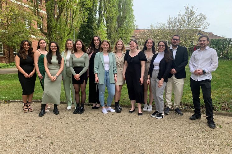 Strahlende Gesichter: Die jüngsten Absolvent*innen des Studiengangs Soziale Arbeit am Rande der Abschlussfeier auf dem Hephata-Campus.