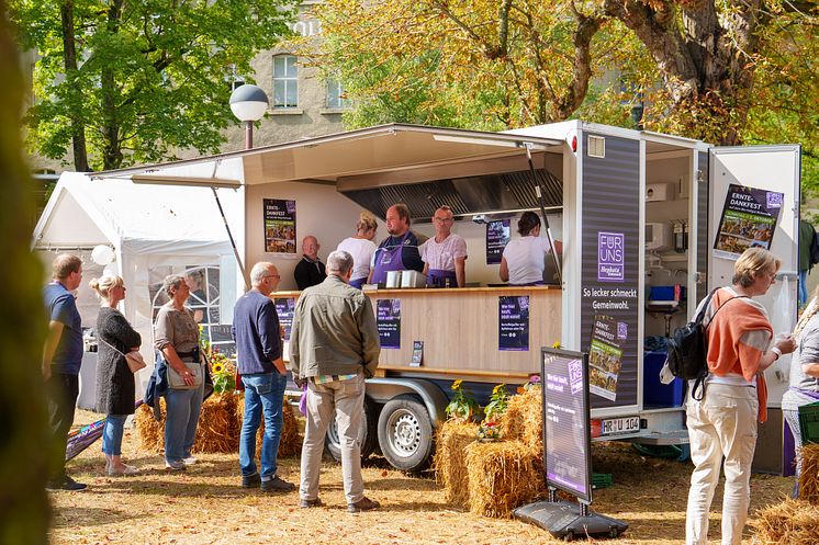 Die beliebten Kartoffelpuffer vom Hofgut Richerode sind nur eines von vielen kulinarischen Angeboten im "Biodorf" neben der Hephata-Kirche, das zum Erntedankfest am Sonntag, 5. Oktober, aufgebaut wird.