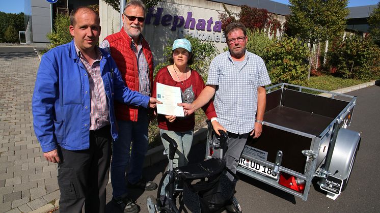 Bei der Tombola der Hephata-Werkstätten für Menschen mit Behinderung während der Hephata-Festtage hat Günter Richardt aus Oberaula den Hauptpreis gewonnen – einen Pkw-Anhänger im Wert von rund 1.000 Euro. Gemeinsam mit seiner Tochter Verena Richardt hat der Gewinner den Hauptpreis dort abgeholt, wo er hergestellt worden ist: In der Metallwerkstatt der Hephata Diakonie in Ziegenhain.