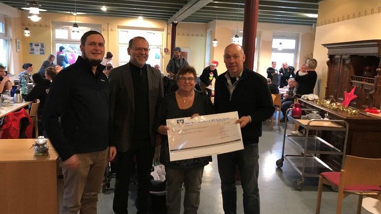 Einen Scheck in Höhe von 358 Euro übergab kürzlich Frank Radu, Betriebsleiter der Werkstätten für Menschen mit Behinderungen auf dem Hephata-Bio-Hofgut Richerode, an das Nachbarschaftsnetzwerk unter dem Dach der evangelischen Kirchengemeinde Jesberg. Die Sprecherin des Netzwerks, Daniela Möller, und Gemeindepfarrer Reinhard Keller nahmen den Scheck entgegen.