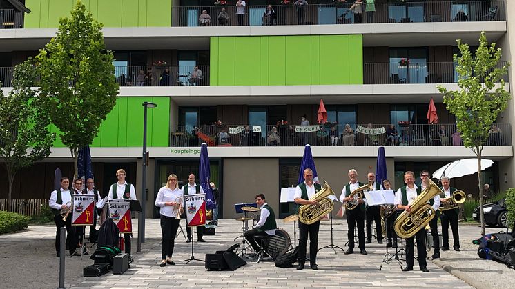 Der Posaunenchor Schwarz unterhielt die Bewohnerinnen und Bewohner des Seniorenzentrums „An der Lauter“ am Sonntag mit einem Hofkonzert.