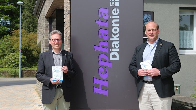 Der Lions-Club Schwalmstadt spendet der Hephata Diakonie in Schwalmstadt 360 nach FFP2-Standard zertifizierte Schutzmasken. Diese überreichte der Präsident des Lions Clubs Schwalmstadt, Dr. Christian Roos, dem Hephata-Vorstand Maik Dietrich-Gibhardt.