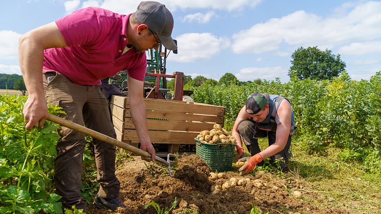 Kartoffelfans können sich freuen, denn sie sind wieder da: Bio-Frühkartoffeln vom Hofgut Richerode. In dieser Woche haben Mitarbeitende und Beschäftigte die ersten Kartoffeln geerntet.