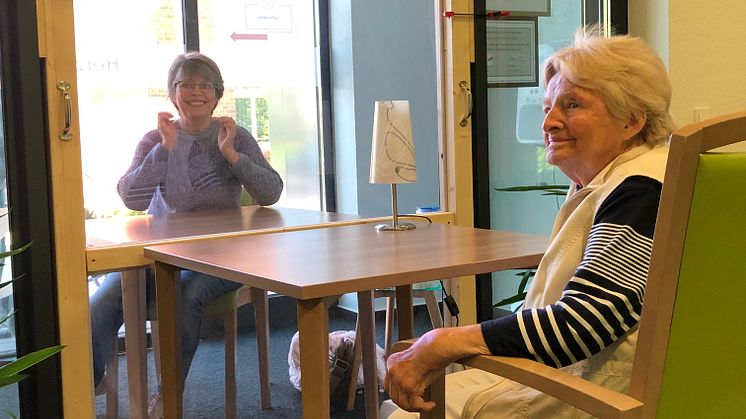 „Wir konnten uns nur an die Straße stellen, um sie mal am Fenster zu sehen“, berichtet Brigitte Petereits Tochter Gabriele Katz. Doch da die ihre Mutter nur noch eingeschränkt hören kann, war es nicht möglich, sich zu unterhalten. Anders am Dienstag, als Gabriele Katz zum ersten Mal seit dem Besuchsverbot wieder zum Besuch ins Seniorenzentrum durfte.