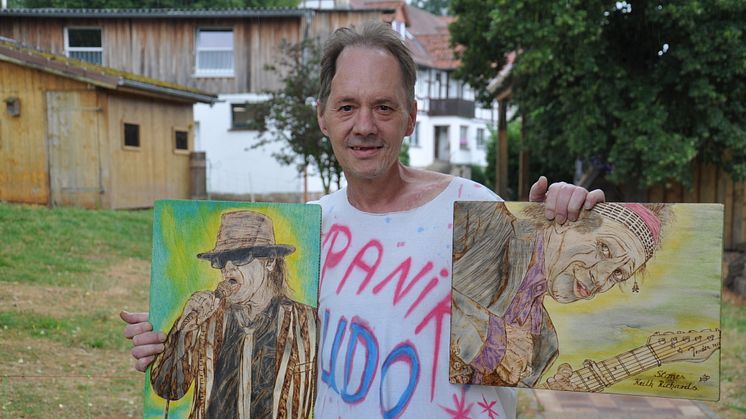 Dabei sind es nicht nur Film- und Rockidole, die ihn kreativ herausfordern. Auch Beethoven, Stargeiger David Garrett und die Nachbildung des Alten Meisters gehört zu seinem Bild-Repertoire. Eine Nachbildung des 1622 von dem niederländischen Künstler Gerrit van Honthorst geschaffenen Ölbilds zeigt „Die Anbetung Christi“ - unverwechselbar. Die zum Teil großformatigen Porträts und Stillleben, unter ihnen auch Pferdebilder, das Motorrad von James Dean oder die Gitarre von Keith Richards, sind durch freihändiges Brennen mit einem Lötkolben oder Holzbrennstift auf Pappelholz entstanden.