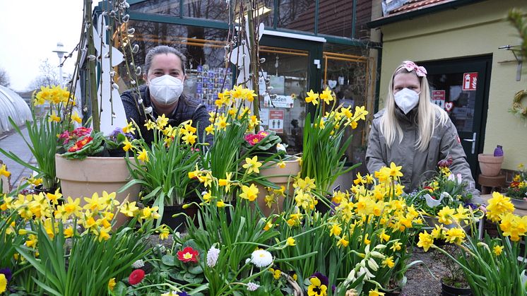 Narzissen, Hyazinthen, Primeln und Hornveilchen gehören zu den Klassikern unter den Frühlingsblumen. „Die bekannten Sorten sind bei unseren Kunden immer sehr beliebt“, weiß auch Sandra Schmidt, Floristin im Blumengarten der Hephata-Gärtnerei. Sie können sowohl im Topf als auch im Beet gepflanzt werden und sind echte Anfängerblumen. Besonders praktisch: Blumenzwiebeln, die in einer Schale arrangiert wurden, können später ins Freiland gepflanzt werden. Wer Frühblüher in Schalen oder Töpfen im Freien aufstellen möchte, sollte darauf achten, dass die Pflanzen in frostigen Nächten ins Haus geholt werden. „Narzissen und Hyazinthen vertragen auch leichten Frost, Primeln überstehen Frost allerdings nicht“, sagt Sandra Schmidt. Als Alternative zu den bekannten Frühblühern empfiehlt Schmidt auch ein Weidenbäumchen als Hingucker im Frühlingsgarten.