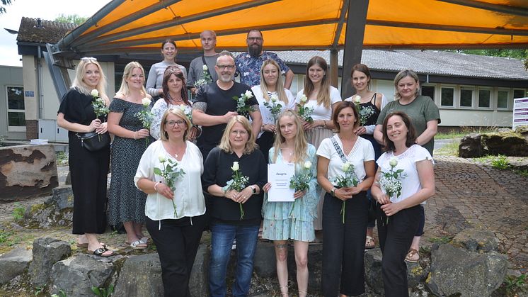 Drei Tage arbeiten, an zwei Tagen die Fachschule besuchen: Seit ihrer Einführung vor drei Jahren gilt die Praxisintegrierte vergütete Ausbildung (PivA) an der Hephata Akademie für soziale Berufe als Erfolgsmodell. 16 Studierende haben nun als erste PivA-Klasse an der Akademie erfolgreich die staatliche Anerkennung für Erzieher*innen erlangt. Große Freude bei der Zeugnisübergabe – unter anderem für Oliver Naß und Ludmila Lang.