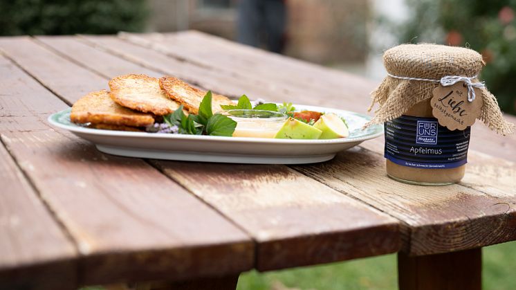 „Für das Apfelmus verwenden wir die Äpfel von ganz besonderen Bäumen auf dem Hephata-Gelände in Treysa“, erklärt Tanja Keller, Leiterin der Abteilung Hauswirtschaft im Geschäftsbereich Behindertenhilfe. Die „Bäume der Hoffnung“ – ausschließlich alte Apfelsorten, darunter Holsteiner Cox, Gravensteiner und Alkmene - wurden 1999 im Rahmen einer Aktion der Evangelischen Kirche Deutschlands gepflanzt. „Mit dem Kartoffelpuffer-Set können sich alle, die zum Erntedankfest auf unseren Hof gekommen wären, ein Stück Kartoffel-Genuss nach Hause holen“, sagt Jessica Walz, Einrichtungsleiterin auf dem Hofgut Richerode. „Wir hoffen, das Erntedankfest im kommenden Jahr wieder gemeinsam mit vielen Gästen feiern zu können.“ An diesem Sonntag wird es pandemiebedingt nur ein internes Erntedankfest in Richerode geben für die Menschen, die dort leben und arbeiten.