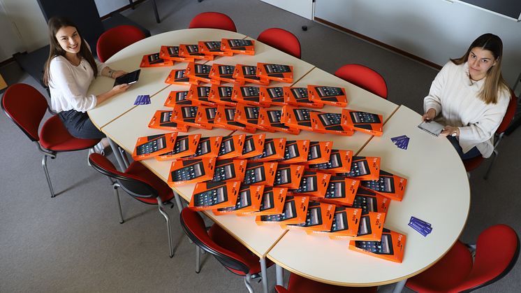 Vorkonfiguration für die Videotelefonie: Die Hephata-Auszubildenden Stefanie Delgado und Gina Borgerding richten in der Hephata-Öffentlichkeitsarbeit die Tablets ein und verpacken sie für den Versand an Einrichtungen an vielen dezentralen Standorten.