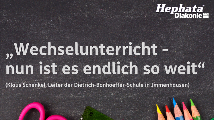 „Seit Oktober wünschen sich viele meiner Kolleginnen und Kollegen und auch ich Wechselunterricht. Nun ist es endlich soweit. Was anderes geht nicht“, sagt Klaus Schenkel, Schulleiter der Dietrich-Bonhoeffer-Schule (DBS) Immenhausen. Die DBS ist eine staatlich anerkannte private Förderschule in Trägerschaft der Hephata Diakonie.