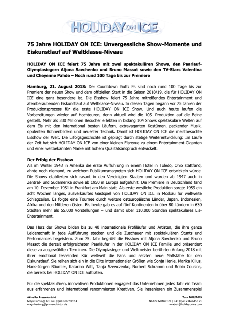 HOLIDAY ON ICE feiert 75 Jahre - Noch rund 100 Tage bis zur Premiere