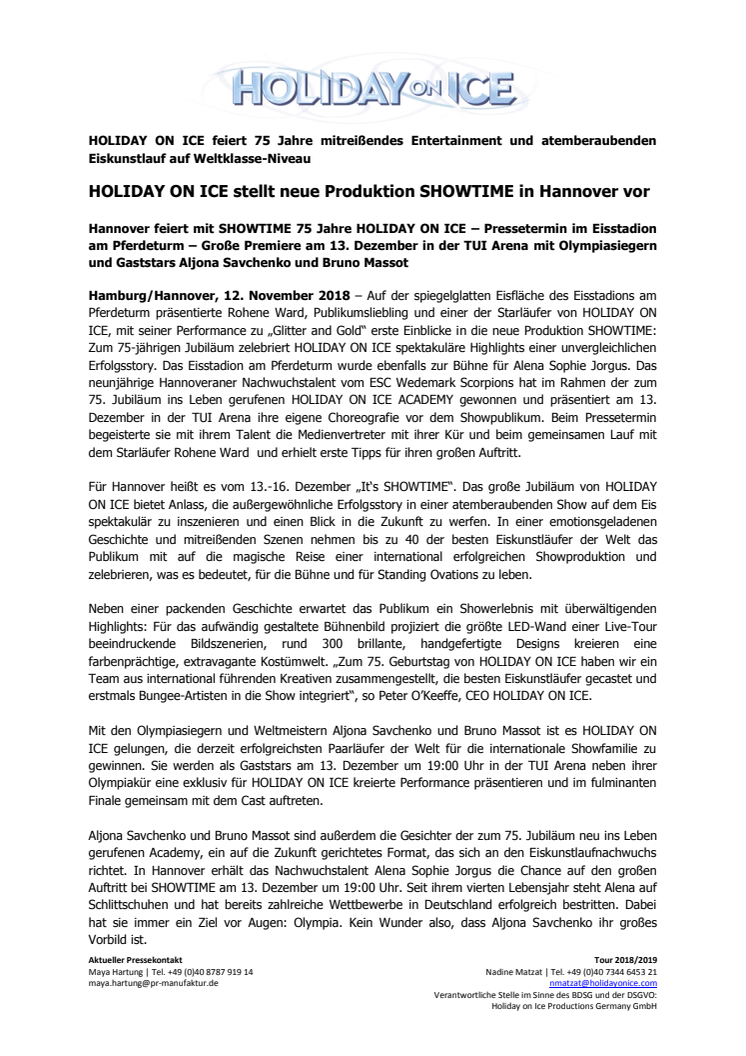 HOLIDAY ON ICE stellt neue Produktion SHOWTIME in Hannover vor