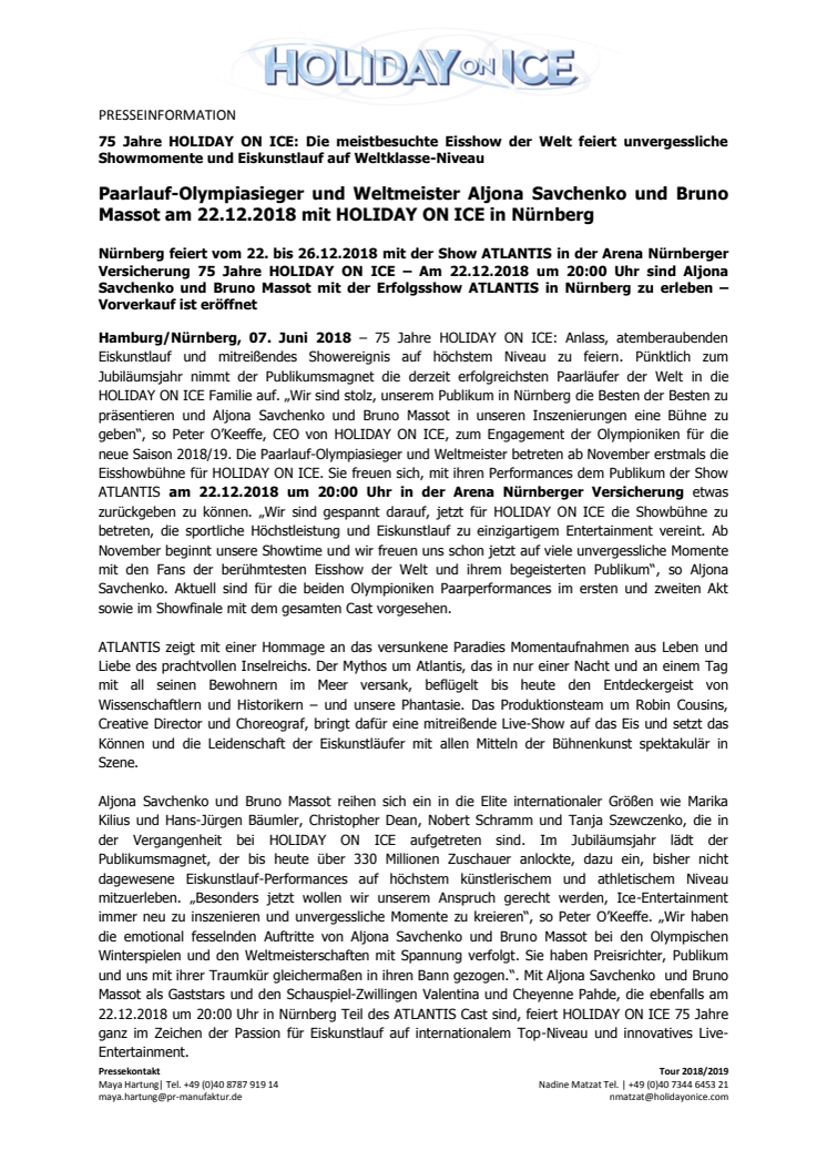 Paarlauf-Olympiasieger und Weltmeister Aljona Savchenko und Bruno Massot am 22.12.2018 mit HOLIDAY ON ICE in Nürnberg
