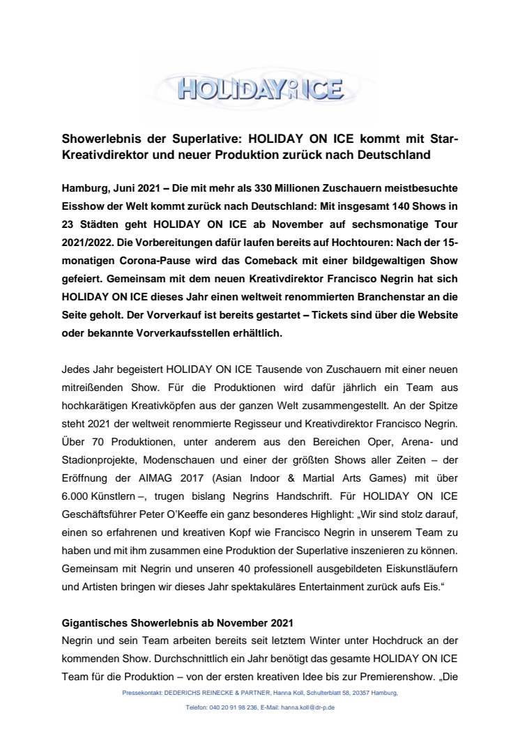 Showerlebnis der Superlative: HOLIDAY ON ICE kommt mit Star-Kreativdirektor und neuer Produktion zurück nach Deutschland